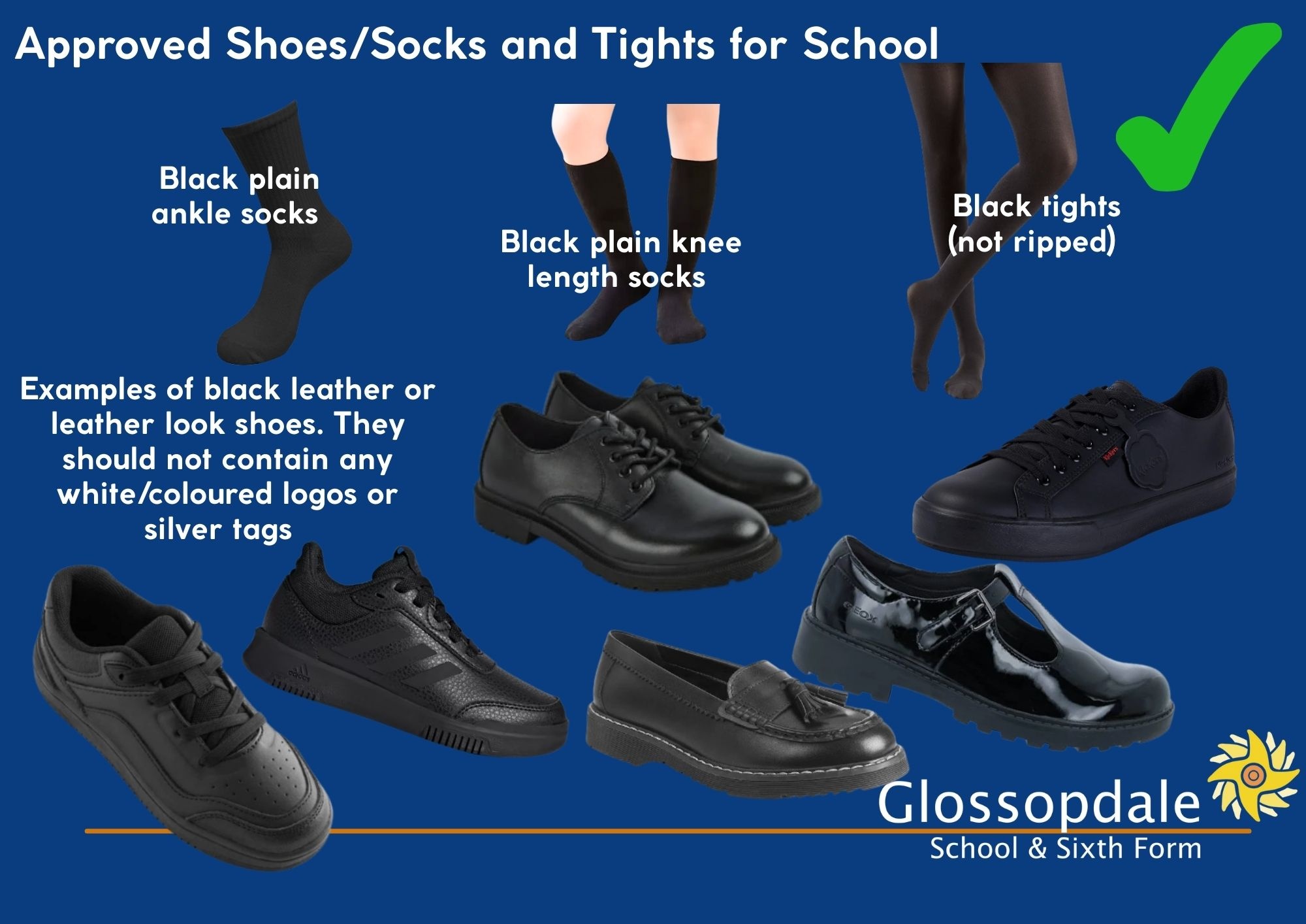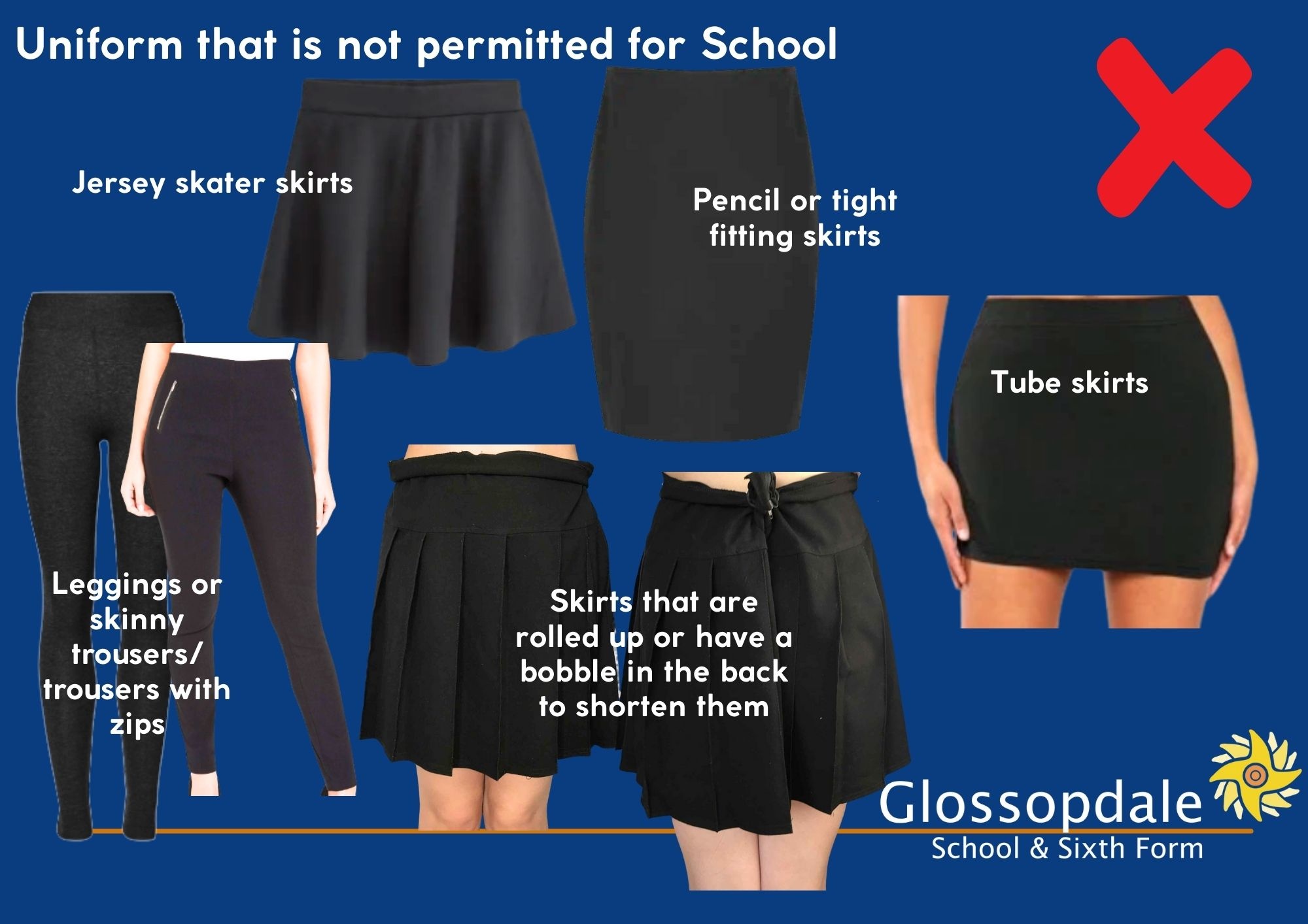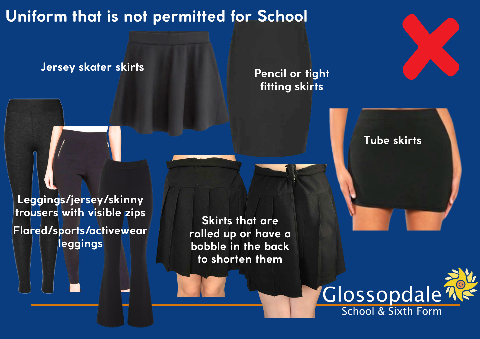 Images of approved and not permitted uniform items for school and PE