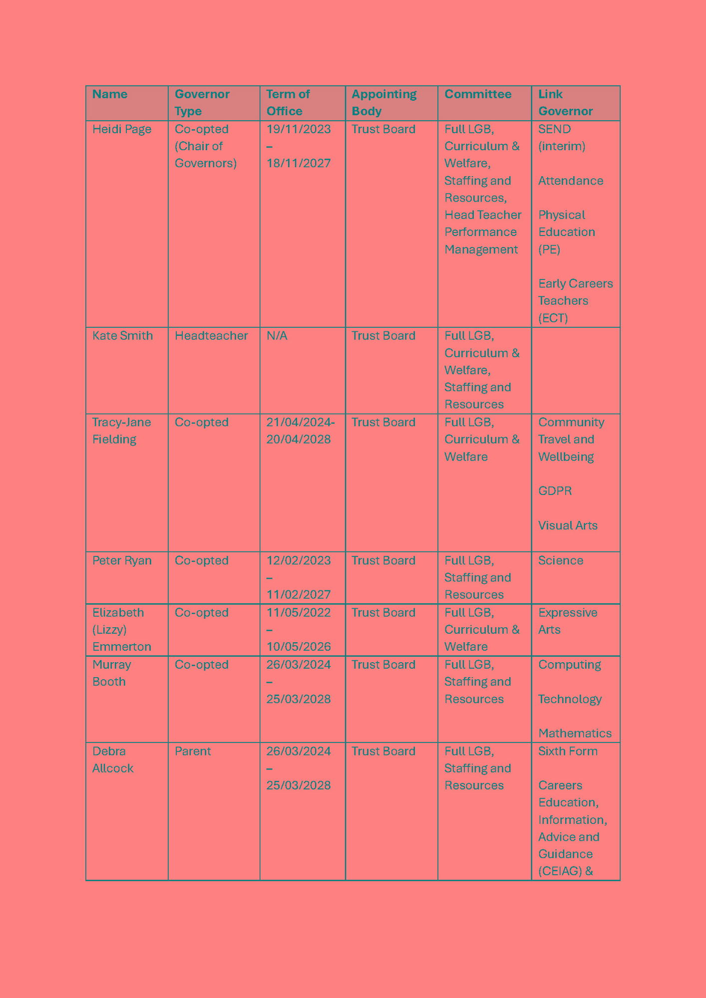 · Heidi Page (interim) - SEND Link Governor